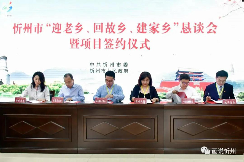 恳谈会后举行了项目签约仪式,各县(市、区)与全国各地忻商企业签署总投资额109亿余元的20个项目,涉及高端装备制造、现代农业、文化旅游、生态环保、新能源等多个领域。范建民在主持签约仪式时指出,希望签约双方加强协作,加大推进力度,共同推动签约项目早日落地、早日开工、早日投产见效。